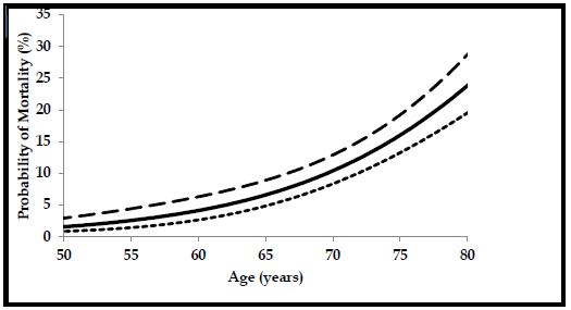 Following the above publication, we wished to present the data in a manner, preferably via graphs, that would be easily comprehended by patients to augment understanding of the importance of TTh and PDE5I treatment in men with T2DM and functional hypogonadism. As age is usually a significant predictor of mortality, we decided to determine how TTh and PDE5I altered the association between age and all-cause mortality as described by Gompertz in 1825 [21]. The algorithm developed by Gompertz suggests that mortality rises exponentially with age and is found below [22].