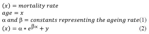 The Gompertz law of mortality underwent a modification by Makeham with the introduction of extrinsic mortality (y) into the algorithm (Gompertz/Makeham model) and is presented below [23].