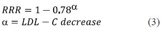 We used the results from the CTT collaboration and derived the following equation to calculate RRR for each individual patient, this dependent on the LDL-C reduction following treatment [35].
